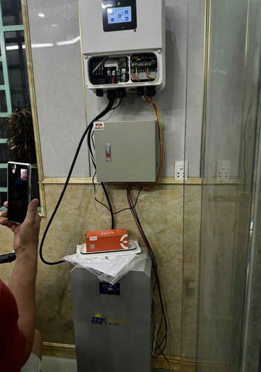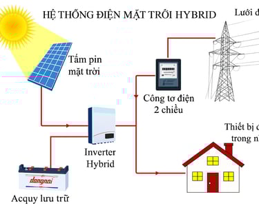 Khi điện mặt trời không đủ, hệ thống tự lấy thêm từ điện lưới — đảm bảo thiết bị luôn hoạt động bình thường.